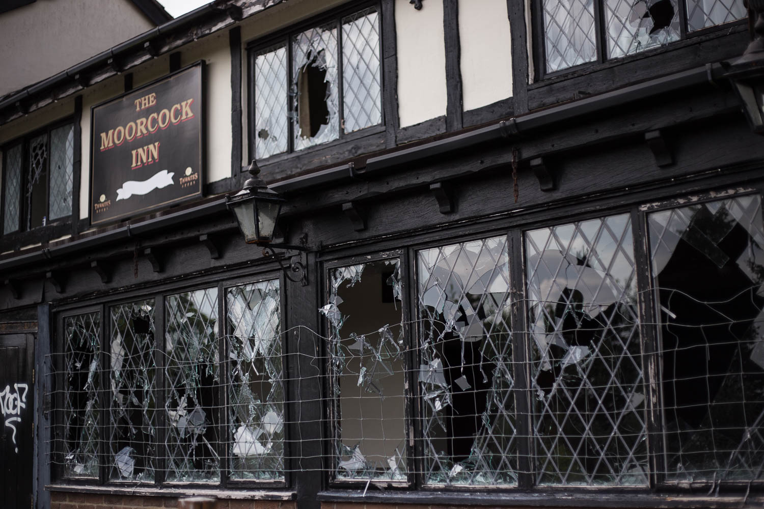 As my pictures show, the Moorcock isn’t going to be serving food any time soon. Memories are all that’s left, fading fast among the piles of broken glass and detritus.