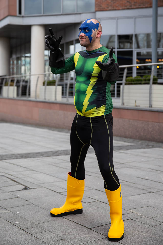 Today I spent a couple of hours photographing some of the visitors to Liverpool Comic Con, held at the Exhibition Centre Liverpool. The wind was crazy, with gale-force gusts blowing hair and bits of costumes everywhere, but spirits were high, even as people queued in the cold to get in.