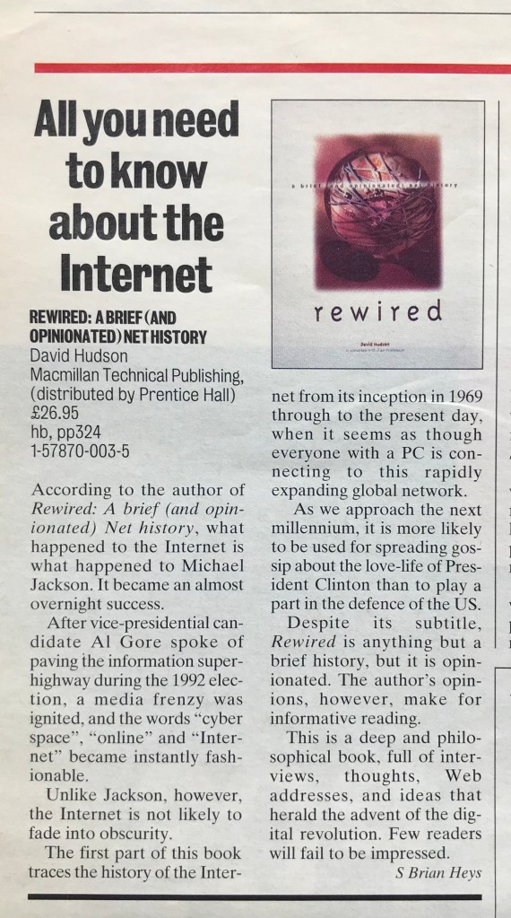 In the review of Rewired above, I mention approaching the next millenium. It feels quite strange to realise we are now two decades into that millenium, and that I wrote those words over twenty years ago.