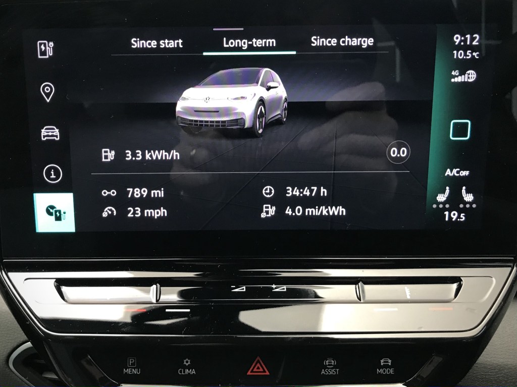 After driving it for exactly four weeks, I took the above screen shot, showing that it’s still averaging about 4 miles/kWh. Winter is fast approaching, and that will be the real test for it, but I’m happy so far, and have experienced no issues whatsoever as a result of driving a fully electric car.