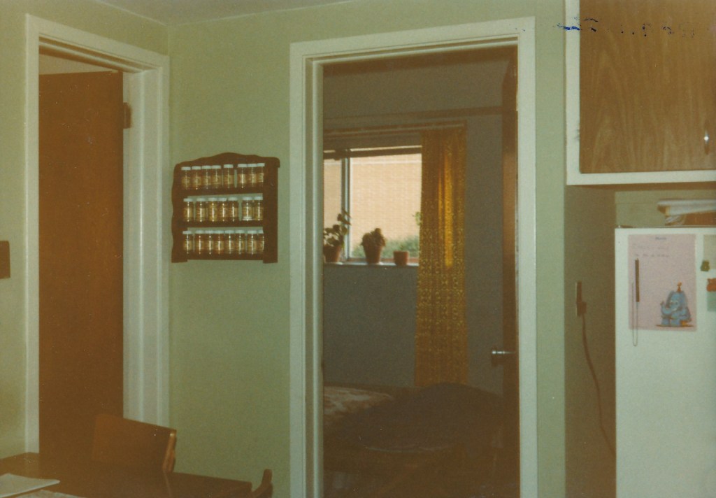 The second shot above is similar in terms of the subject matter, and the depth and layering. It’s a photo of the interior of my brother’s apartment in East Lansing, Michigan. To me, this is an equally excellent photograph. Look at the tight framing, the straight lines, the angles, and the sense of movement through the picture into the bedroom, where there’s a glimpse of a bed, curtains, plants, and beyond through the window to a brick wall outside.